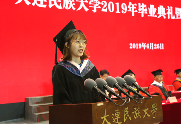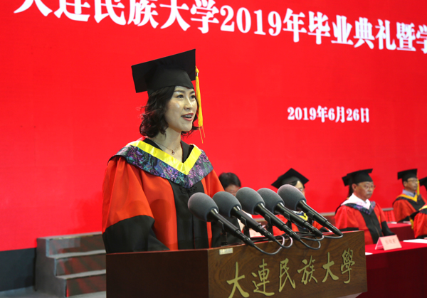 教师代表、生命科学学院副院长李婷婷勉励毕业生要把学习当成一种习惯,把吃苦当成一种吃补,勇于奉献,不忘初心,不驰于空想,不骛于虚声,遇到失败不气馁,遇到坎坷不退缩,牢记“艰苦创业、坚韧不拔、团结爱校、新校新办”的民大精神,树立以民大为荣、为民大争光的意识,为民大的兴旺发展贡献力量。