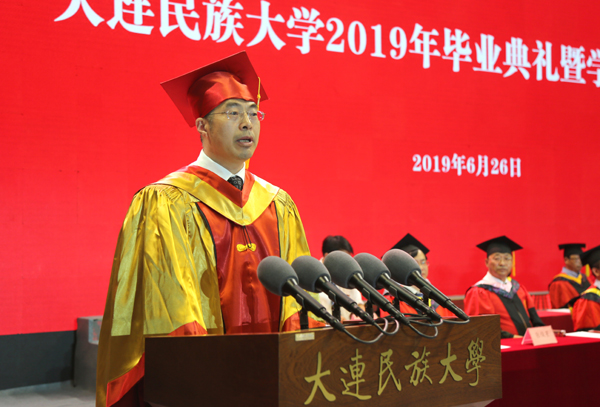 面对即将踏上新征程、开启新生活的毕业生,丁克毅饱含深情地说,母校不会忘记,在2017年迎接教育部本科教学工作审核评估过程中,你们以良好的精神风貌,塑造了“学在民大”的品牌,赢得了评估专家们的高度认可;母校不会忘记,在学校迈入新的发展阶段,当获批硕士学位授权单位和2个一级学科授权点时,当学校新增460亩校园面积时,你们的欢呼雀跃和朋友圈转发的喜讯;母校不会忘记,在你们发奋求学的四年间,我们有4个本科专业在辽宁省综合排名第一,6个专业排名第二,14个专业进入全省前20%,在绝大部分专业进入全省前50%的基础上,又有12个专业被列入辽宁省一流本科教育示范专业,居于全省高校前列;母校也不会忘记,在你们挥洒青春的四年间,民大学子首次亮相在中央电视台“五月的鲜花”全国大中学生文艺汇演,展现了新时代民大学子的风采。