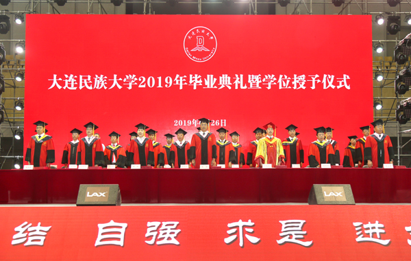 典礼在庄严的国歌声中拉开帷幕。副校长段晓东宣读2019届毕业生名单、授予学位的决定和表彰优秀毕业生的决定。校领导为优秀毕业生代表颁发证书。