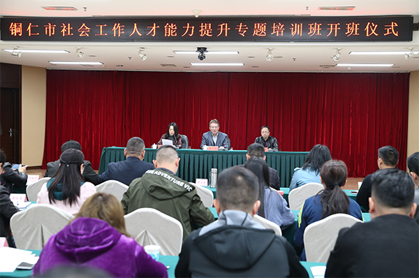 民大新闻网讯 4月16日,铜仁市社会工作人才能力提升专题培训班开班仪式在欧冠培训中心举行。培训中心主任陈卫东,铜仁市民政局副调研员戴应进以及铜仁市各区(县)民政局、市直相关职能部门社会工作业务骨干共23个单位50名学员参加仪式。开班仪式由培训中心副主任白玫主持。