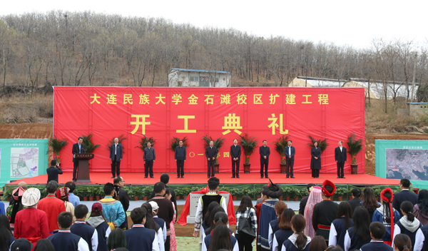 国家民委办公厅、人事司有关同志,大连金普新区城建局、大连金石滩管委会有关同志,学校党委常委、校领导和师生代表等参加开工典礼。