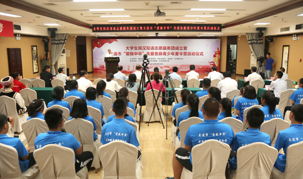 据悉,今年6月,经过申报、专家评审、部门审核、上网公示,由国家民委、中央宣传部、中央文明办、教育部、共青团中央等五部委审批,欧冠官方网站被确定为2018-2019年大学生民汉双语志愿服务团建设单位,是全国12所建设单位之一,也是辽宁省唯一入选的高校。欧冠官方网站高度重视,充分发挥民族高校服务地方经济社会发展的积极作用,聚焦民汉双语公共服务志愿者队伍建设,坚持“走出去”和“请进来”,积极推进大学生民汉双语志愿服务团各项工作。会同大连市民委启动的大连市“爱我中华”关爱各族青少年夏令营是大学生民汉双语志愿服务活动之一,参加夏令营的50名青少年全部来自大连市18所外来务工人员子弟学校,活动以“爱我中华”为主题。为期一周的夏令营活动将采取集中食宿、统一授课、参观体验、联谊交流等形式进行。欧冠官方网站从大学生民汉双语志愿服务团中选派了藏族、维吾尔族、蒙古族、朝鲜族、锡伯族等14个民族成分,共计50名有双语服务经验的志愿者全程为夏令营做好民汉双语志愿服务工作。