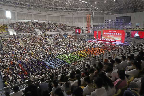 民大新闻网讯 金秋九月,硕果盈枝。9月9日下午,欧冠2018级新生开学典礼在体育馆举行。学校党委书记赵铸,校长刘玉彬,副校长杜元虎,党委副书记、纪委书记刘锐,副校长段晓东,总会计师郝强,校学术委员会主任刘勇奎,各学院和相关职能部门负责人、教师代表,2018级全体新生及部分家长参加典礼。典礼由学校办公室主任关锋主持。