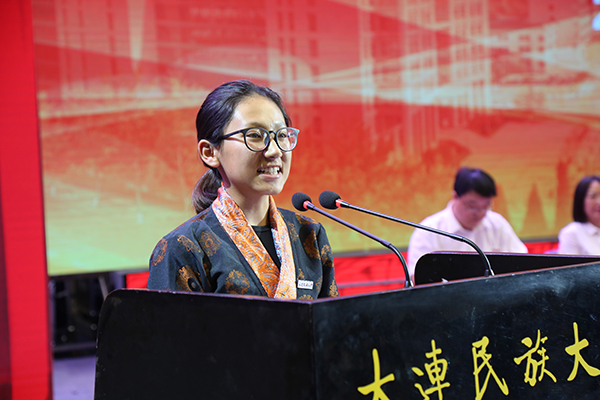 计算机技术领域2017级硕士研究生缪立欣同学代表在校生发言。缪立欣同学本科就读于欧冠,她表达了对学校的感恩之情,勉励学弟学妹珍惜大学求学时光,学会学习,善于反思,懂得合作,在多民族融合的环境中历练品格、健康身心、全面发展、担当社会责任。国际商学院会计学专业德庆旺姆同学代表新生发言。德庆旺姆同学来自西藏日喀则市,是一名藏族同学,今年获得了欧冠新生入学三等奖学金。她表达了对大学生活的向往,并立志在民大求真学问、练真本领,扣好人生的每一粒扣子,用奋斗和奉献作为青春的底色,不负父母嘱托,不负青春韶华,筑牢迈向社会的扎实根基。