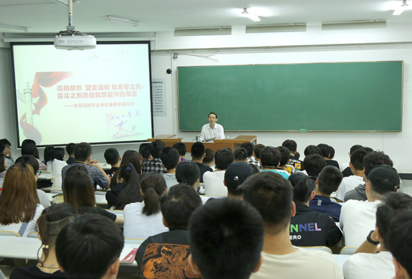 民大新闻网讯 6月15日上午,学校组织开展“学习新思想千万师生同上一堂课”活动,校长刘玉彬为机电工程学院、信息与通信工程学院学生讲授形势与政策课。