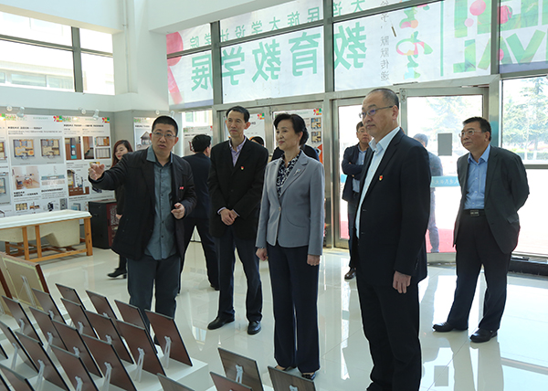 调研期间,周小莹考察了学校生物技术与资源利用教育部重点实验室、设计学院教育教学成果展、辽宁省光电材料研究中心等教学科研单位,并与有关负责人进行了深入交流。