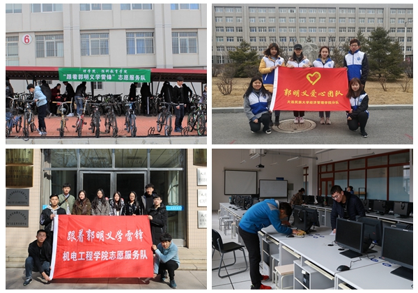 活动当天,各学院党团志愿服务队、青年志愿者协会等组织,开展了形式多样的志愿服务活动。校学生会启动了新一年“青春有校会,温暖四季行”活动,春季专项活动将组织开展关爱女生、贴心服务等活动。机电工程学院组织开展了“跟着郭明义学雷锋”主题党日活动,全体学生党员通过集体学习讨论、观看郭明义事迹短片等,增强志愿服务的责任感和行动力。生命科学学院、计算机科学与工程学院、物理与材料工程学院的志愿者们走进学院实验室,对实验设备、器材进行集中清洗、消毒,保障新学期师生教学需要。经济管理学院“郭明义爱心团队”成员来到学生宿舍,帮助宿舍管理员做好学生返校统计工作。外国语学院、国际商学院开展了“送一杯温暖,递一份温情”微关爱活动,志愿者们在课前给老师送上一杯热水,让新学期的第一课充满了温馨。理学院、预科教育学院组织了三支“跟着郭明义学雷锋”志愿服务队,分别走进教学区、寝室和生活区开展志愿活动,在各个自行车停放点,同学们冒着寒风,整理出一排排整齐的自行车,扮成校园内的一道文明风景线。环境与资源学院的志愿者与向日葵社团联合举办爱心衣物捐赠活动,志愿者们还走进博爱家园融合教育中心,协助园内老师及孤独症儿童,为学园进行了学前清扫。