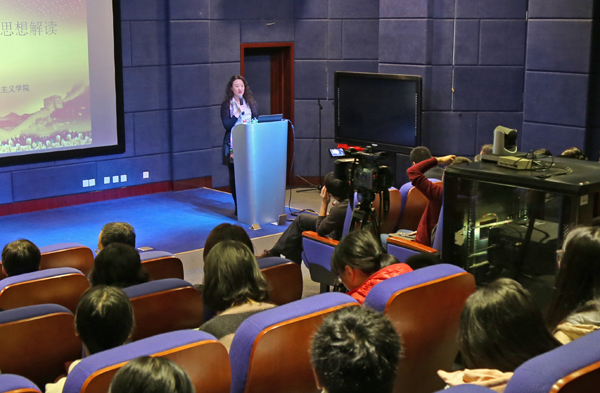 民大新闻网讯 按照《辽宁省教育厅办公室关于开展党的十九大精神进高校巡讲活动的通知》,省高校工委、省教育厅组建专家宣讲团走进省内高校开展党的十九大精神巡讲,推动高校广大党员干部和师生员工深入学习、透彻理解、自觉贯彻十九大精神。12月20日,宣讲团成员、东北大学马克思主义学院于春玲教授应邀来校,作了“十九大报告的文化思想解读”专题宣讲报告。党委副书记、纪委书记刘锐,各党总支、直属党支部负责人,思想政治理论课教学科研部、东北少数民族研究院教师代表,各学院教工党支部书记、辅导员及学生代表聆听报告。