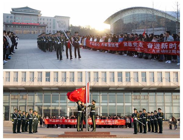 12月9日早晨,两校区同时举行纪念“一二•九”运动82周年主题升旗仪式。升旗仪式上,校学生会向全校同学发出号召,始终传承先辈们坚定爱国心、自觉跟党走的光荣传统,继续增强爱党爱国情怀,做到对国家和民族的发展前景更有信心,对习近平总书记更加爱戴,切实增强把个人梦想融入中国梦的高远志向和时代责任。与此同时,各级团学组织还开展了丰富的文体活动,校学生会分别在两校区举办纪念“一二•九”运动82周年观影学习会、主题演讲比赛及“团结杯”新生拔河赛,经济管理学院举办“青春绽放新时代”团支部合唱比赛,计算机科学与工程学院举办了2017级团支部风采展,环境与资源学院举行了学生干部骨干培训班等,引导同学们将“一二·九”精神薪火相传,增强爱国情怀,牢记历史、继往开来,时刻砥砺自身,承担起新时代肩负的历史使命。