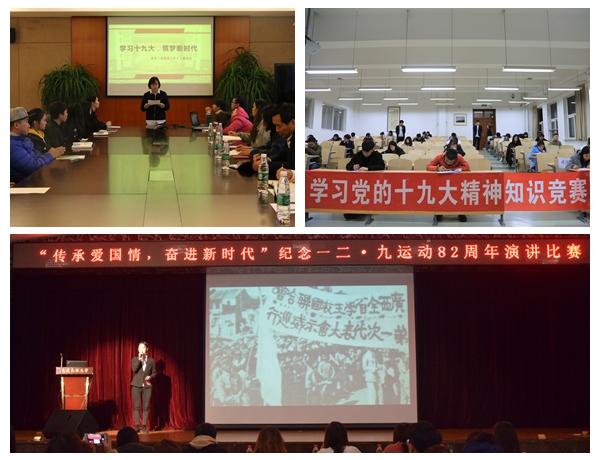 活动期间,各级团学组织将学习十九大精神作为纪念活动的主线,落实学校党委相关部署,贯彻学懂、弄通、做实的学习要求。学生工作部、校团委联合印发《关于在全校学生中组织开展学习党的十九大精神系列活动的通知》,全校基层团支部(班级)集中召开“学习十九大,筑梦新时代”主题团(班)会。学校联系领导、退休老领导、班导师等应邀参加团(班)会,与同学们一同学习十九大报告原文,原汁原味解读领会十九大精神和党章。为扩大学习效果,校团委积极利用网站、微信、微博等线上宣传平台,拓展学习空间,唱响网上主旋律,学校团委微信号成功入围全国高校共青团微信号百强排行榜第85位。