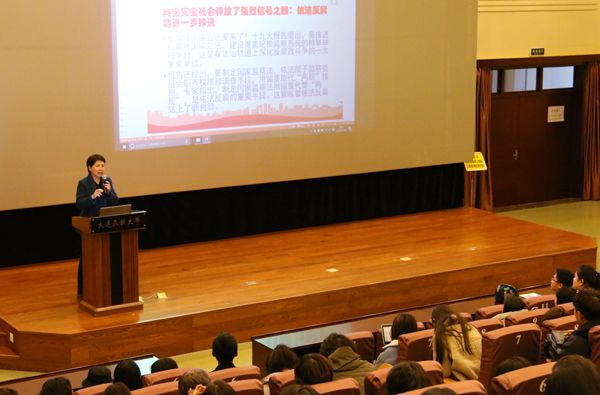 民大新闻网讯 11月28日,校党委副书记、纪委书记刘锐在金石滩校区报告厅为经济管理学院和国际商学院学生作了题为“关于党的十九大精神的学习和理解”的专题宣讲报告。