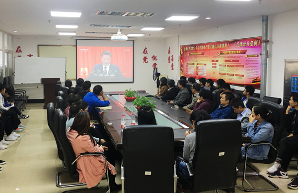 图书馆直属党支部组织全体馆员收看了十九大开幕会,大家认真聆听习近平总书记作的报告,做好笔记。当日下午,在支部QQ群里,陆续将十九大报告摘登、报告中直抵人心的19句话、媒体评论等内容进行了分享,要求支部成员认真学习。19日下午,支部党员集体学习讨论了习近平总书记作的十九大报告内容。支部成员一致认为,十九大报告内涵丰富,思想深刻,论述精辟,深受鼓舞。报告回顾总结了过去5年党中央团结带领全党全国各族人民坚持和发展中国特色社会主义的辉煌成就和宝贵经验,对决胜全面建成小康社会、夺取新时代中国特色社会主义伟大胜利做了全面部署。要以党的十九大为指引,坚定理想信念,在各自岗位和工作中履职尽责,为图书馆和学校发展建设贡献力量。此外,图书馆还在欧冠购置的电子资源中,整理汇总出与十九大相关的数字资源在图书馆微信公众号上发布,供广大师生学习利用。