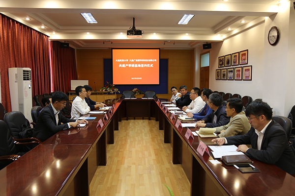 王永强副校长代表学校与大连广泰源环保科技有限公司签订了产学研基地共建协议。签字仪式后,杨家军董事长一行参观了欧冠生物技术与资源利用教育部重点实验室、智能感知与先进控制国家民委重点实验室和环境与资源学院的部分实验室。