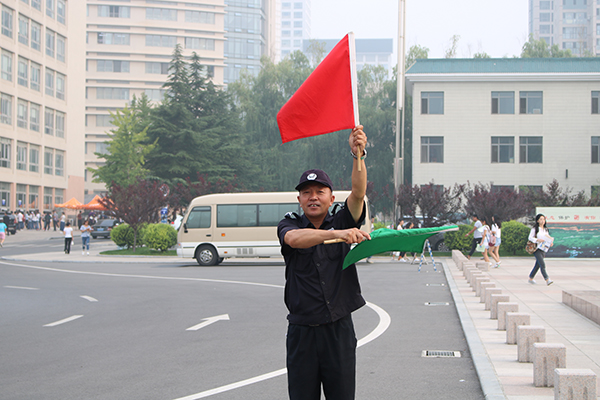 早上七点半,武装保卫处索长国在自己所负责的学校西门指挥进校车辆。挥动红绿旗子,成了他一早上重复最多的动作。为了确保迎新安保工作的顺利开展,武装保卫处安排了70多名警力,分布在校门口、停车场、迎新现场等地。每一位工作人员的肩上都佩戴着一个执法记录仪,这是今年的全新装备,能够全程将迎新现场的情况进行数字化记录。除此之外,武装保卫处还在新生群里点对点推送防骗讯息。很多家长表示,路上碰到了很多发放传单、网络贷款的情况,但是学校的安全宣传做到了未雨绸缪,所以他们绝不会上当受骗。截止下午四点,迎新工作进入尾声,武装保卫处还没有接到一起受骗案件。