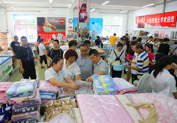 学校超市里,人头攒动。据了解,为了保证新生购买到放心物品,方便他们尽快入住,超市特意储备了大量的学习生活用品。