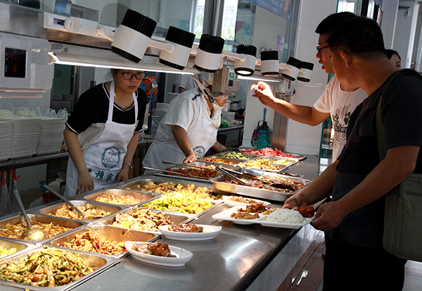 这是机电工程学院自动化172班的马雪原同学和父母在学校的第一餐。经过一天的旅途奔波,一家人都略显疲惫,但依然难掩入学的欣喜。马雪原的妈妈说:“食堂饭菜很可口,份量也足,既经济又实惠,更主要的是学校食堂很干净,孩子能在这样好的大学里读书,我们当家长的很放心。”吃完这顿午饭,马雪原的父母就要启程返回云南老家了。为了尊重少数民族的饮食习惯,学校清真食堂专门从新疆聘请厨师,确保清真餐地道可口。回族新生王亚鑫说:“食堂的大盘鸡、馕等美食让我想起了家的味道。”