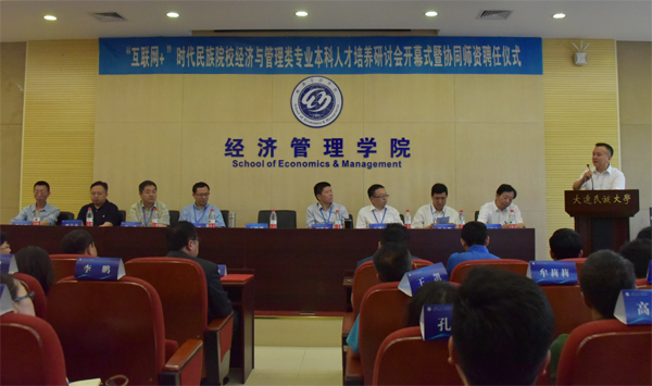 本次会议主要关注“互联网+”背景下的民族院校本科人才培养,探讨经济与管理类专业如何创新培养模式,积极响应市场和社会的需求,实现专业转型发展。会议期间,为获聘学校经济管理学院协同师资客座教授、专业建设指导委员会委员、创新创业导师和实践导师人员颁发了聘书,并组织召开“院长·书记论坛”和 “系主任·专任教师论坛”,与会人员介绍了所在教学单位保障教学中心地位的举措、本科人才培养特色、专业教学特色及专业建设等方面的情况,并展开热烈交流和深入探讨。