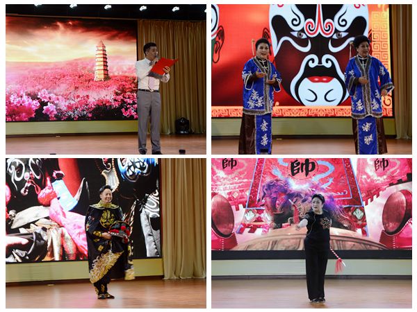 演出在欧冠艺术团欢快的舞蹈《炫舞飞扬》中拉开帷幕。大连话剧团国家二级演员李尚霖为大家带来配乐诗朗诵《为人民放歌》,深情的朗诵赢得阵阵掌声。沈阳评剧院国家一级演员宫静为大家带来评剧《杨门女将》,出生梨园世家的宫老师,虽已69岁高龄,仍音色优美、身姿矫健,展示了评剧的无限魅力。来自金普新区戏剧家协会的徐金珍、吕燕带来京剧《凭牢窗望同仁》。沈阳评剧院国家一级演员、梅花奖获得者周丹带来评剧《小河流水》,唱腔清香甜润,令人回味。大连京剧院国家二级演员岳峰带来戏剧表演《变脸》,让师生一睹国粹风采。演出在全体人员合唱的《祖国你好》的优美歌声中落下帷幕。