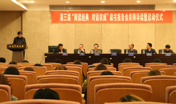 民大新闻网讯 4月24日,经济管理学院第三届“阅读经典,对话权威”读书报告会良师导读暨启动仪式在金石滩图书馆报告厅举行。副校长杜元虎参加启动仪式并做主旨演讲。思想政治理论课教学科研部白屯教授,经济管理学院领导班子全体成员为与会师生做名著导读。来自各学院以及北方民族大学管理学院的200多名学生参加活动。启动仪式由经济管理学院常务副院长刘大志主持。