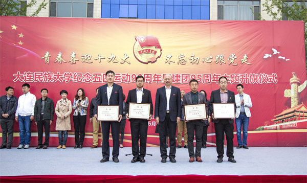 仪式现场对2016年度学校“先进团委”进行了表彰。赵铸向获得“先进团委”称号的建筑学院团委,理学院、预科教育学院团委,信息与通信工程学院团委、经济管理学院团委颁发奖状。