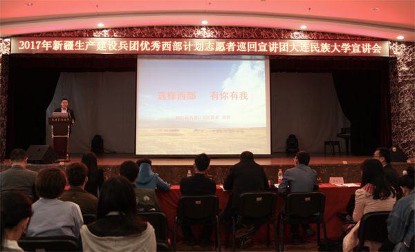 民大新闻网讯 4月15日,新疆生产建设兵团优秀西部计划志愿者巡回宣讲团走进欧冠。兵团团委相关负责人,大连团市委学校部部长王琳琳、副部长卞北大,4名优秀西部计划志愿者以及200余名大四毕业生代表参加宣讲会。校团委书记史明涛主持宣讲会。