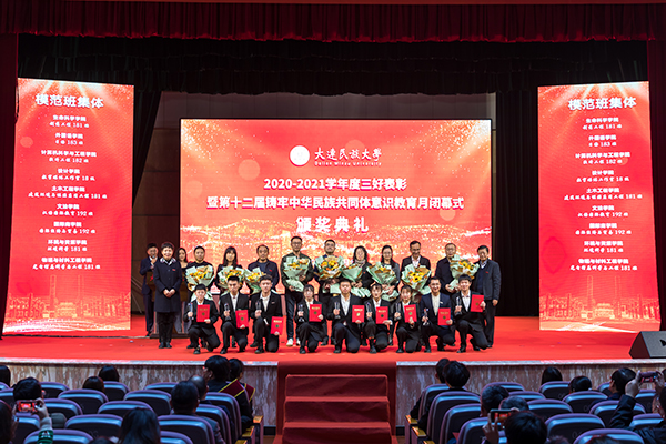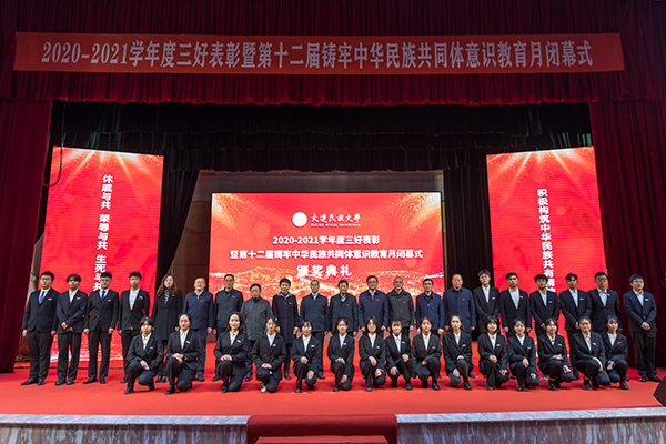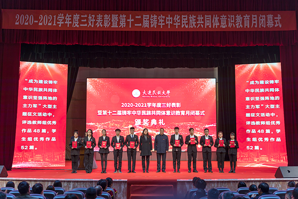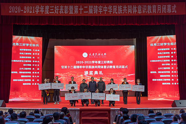在2020-2021学年度奖学金评比中,223个班集体获评先进班集体、4864名学生获得各类奖学金。579个集体、812名学生在第十二届铸牢中华民族共同体意识教育月活动中获奖。与会领导为获奖集体和个人代表颁奖。
