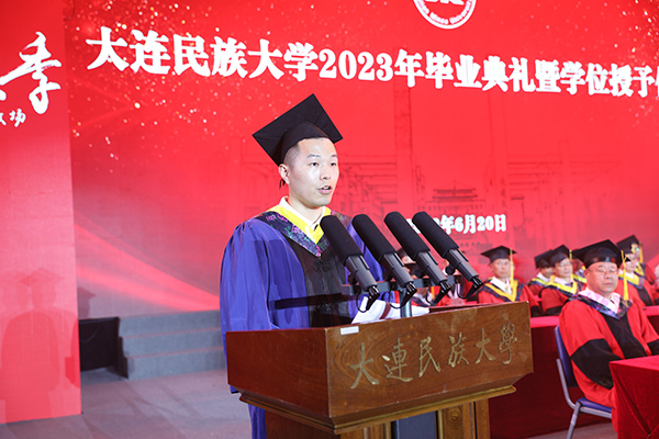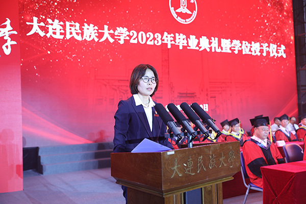 教师代表、机电工程学院葛平淑鼓励毕业生们,要保持对知识的渴望,做新时代的探索者、奉献者、奋斗者和担当者,继续弘扬民大精神,用四驱动力在新的人生赛道上跑出好成绩,谱写人生新篇章。