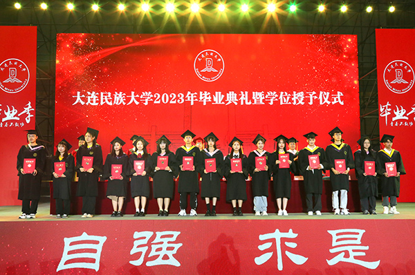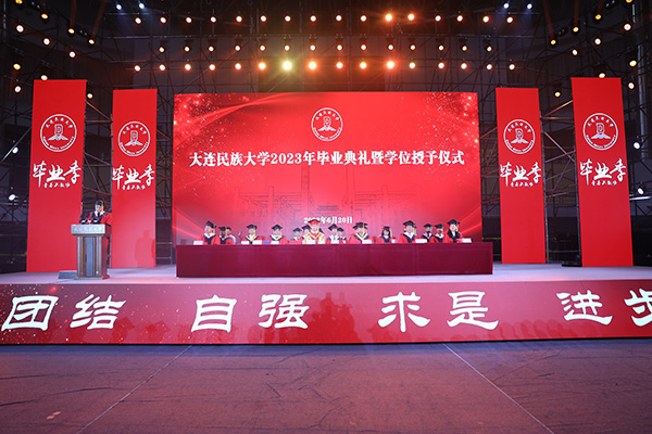 黄永东主持典礼,段晓东宣读2023届毕业生名单、授予学位的决定和表彰优秀毕业生的决定。党委常委、校领导为优秀毕业生代表颁发证书。