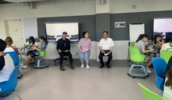 ▲袁梅(中)在课堂上与专家、学生互动。中央民族大学党委宣传部供图