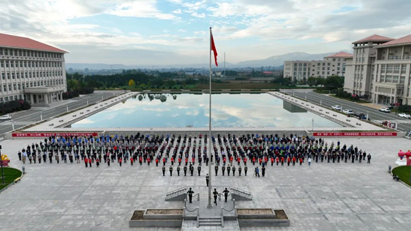▲西北民族大学举行庆国庆升国旗仪式。西北民族大学党委宣传部供图
