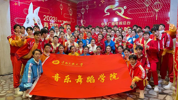 ▲中南民族大学音乐舞蹈学院学生参加2023年中央广播电视总台春节联欢晚会。中南民族大学党委宣传部供图