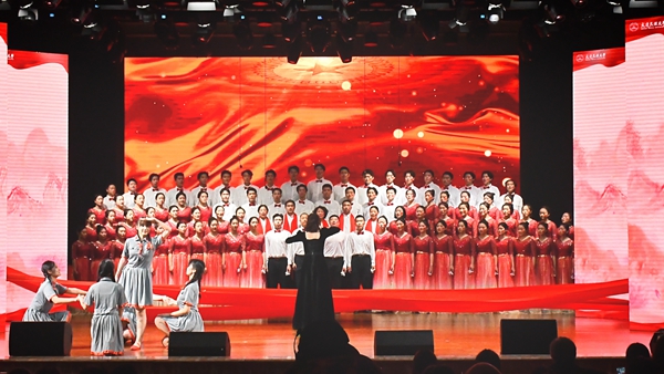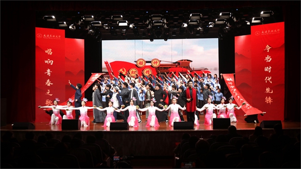 文法学院师生以饱满的热情,嘹亮的嗓音演唱了《唱支山歌给党听》、《灯火里的中国》,师生将把中华民族共同体意识根植于内心深处,弘扬中华优秀传统文化,以实干担当续写新的华章。