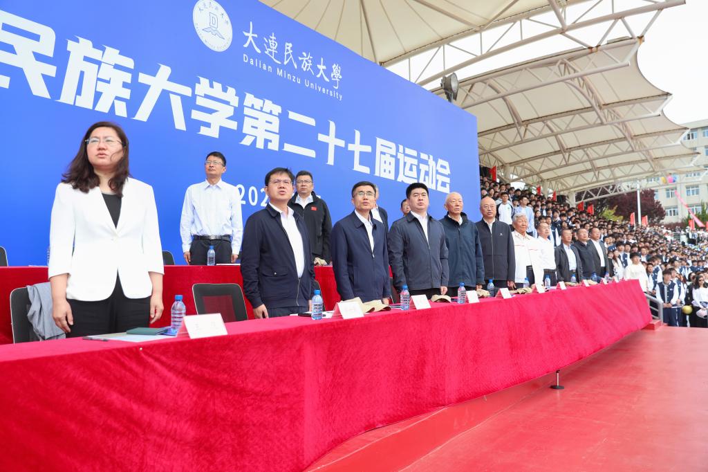 民大新闻网讯  初夏之日,万物竞秀。翠木繁盛,活力迸发。5月24日,学校第二十七届运动会在金石滩校区体育场举行。学校党委书记赵铸,党委副书记、校长丁克毅,党委副书记、纪委书记赵立涛,党委常委、副校长张树彪,党委常委、副校长董斌,党委常委、总会计师余世等,党委常委、宣传部部长、统战部部长包和平,党委常委、组织部部长王慧,学校退休老领导金涛、蔡明德、张英福等出席运动会。金石滩校区综合管理办公室主任王众主持开幕式。