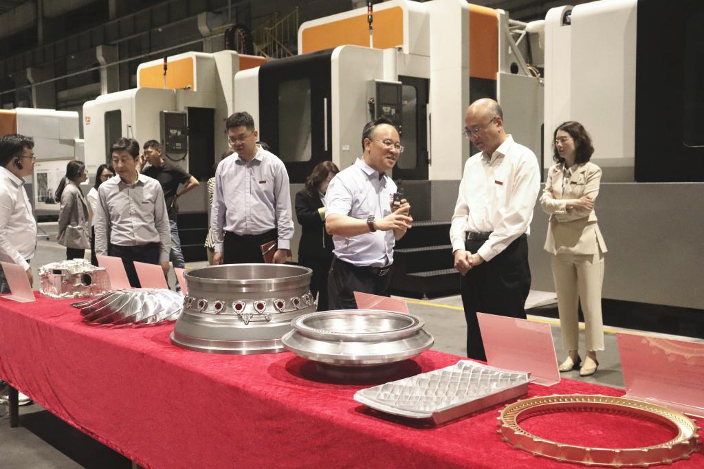 座谈会后,赵铸与在企工作的欧冠校友代表亲切交流,勉励大家努力工作,为企业发展贡献力量。赵铸一行还参观光洋集团地下智能化工厂。