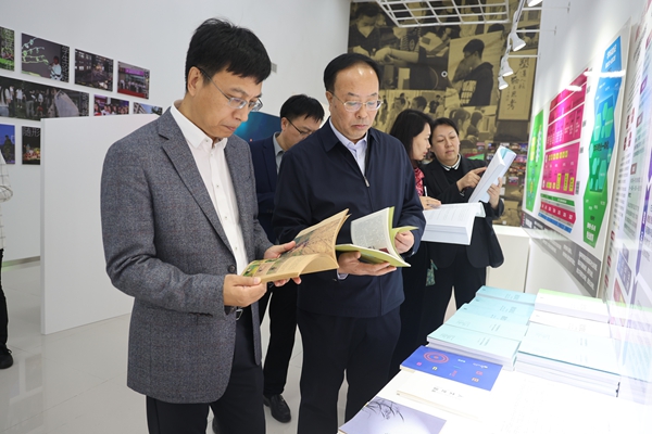 在校期间,陈青一行观看了学校整体情况介绍宣传板,参观了生物技术与资源利用教育部重点实验室、物理与材料工程学院重点实验室和设计学院教育教学成果展。