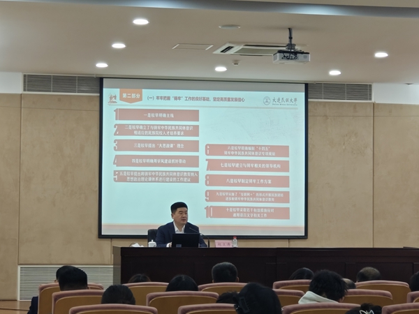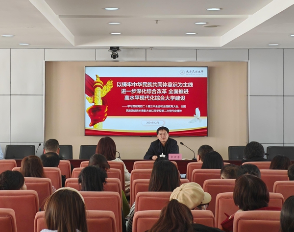 民大新闻网讯 为深入学习贯彻党的二十届三中全会和全国教育大会、全国民族团结进步表彰大会精神,落实全省和全市教育大会精神,进一步贯彻落实学校第二次党代会精神,从12月10日开始,学校党委常委、校领导深入分管部门和联系单位,开展宣讲11场次,做到主题宣讲活动立体化和全覆盖。