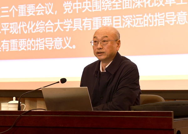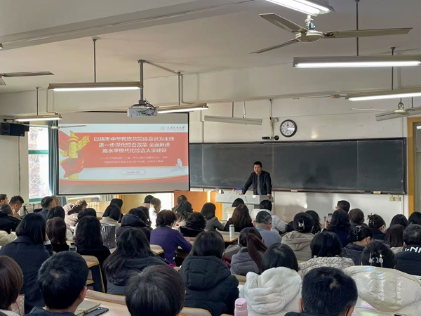 本次宣讲以“以铸牢中华民族共同体意识为主线,进一步深化综合改革,全面推进高水平现代化综合大学建设”为主题。从以党的二十届三中全会和全国教育大会、全国民族团结进步表彰大会精神为指导,全面贯彻落实学校第二次党代会精神,把坚持高质量发展作为办好新时代欧冠官方网站的硬道理;围绕铸牢中华民族共同体意识主线,奋力打造“十个较强”工作优势,持续推动学校内涵式高质量发展;凝聚高质量发展的强大合力,全面推进高水平现代化综合大学建设等三大方面,结合广大师生员工的思想实际和工作实际,进一步统一思想,凝聚共识。