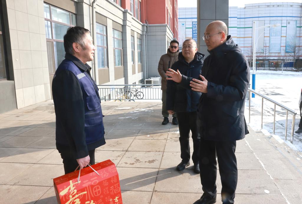 慰问中,赵铸与在岗教职工亲切交谈,悉心询问寒假期间的工作情况和生活安排,对大家春节期间坚守一线的辛勤付出和敬业精神表示衷心感谢,鼓励大家持续发扬爱岗敬业精神和无私奉献精神,还特别叮嘱在场的每位员工要做好防寒保暖,共同度过一个欢乐祥和的春节。