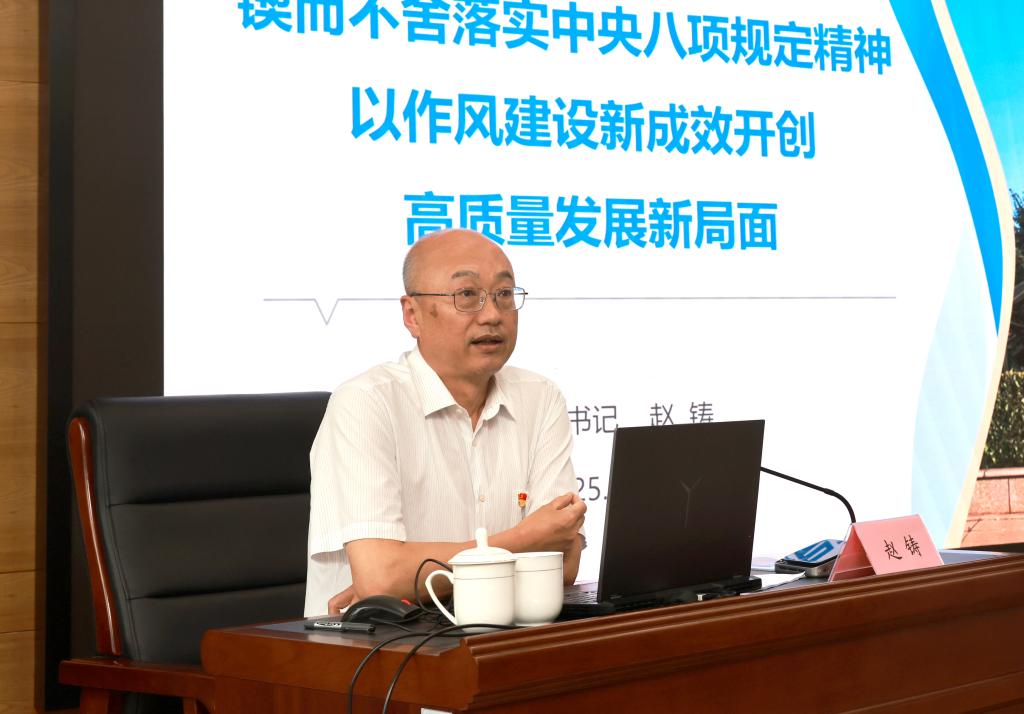 赵铸以“锲而不舍落实中央八项规定精神 以作风建设新成效开创高质量发展新局面”为题,紧紧围绕深入学习习近平总书记关于加强党的作风建设的重要论述和中央八项规定及其实施细则精神,从深刻认识锲而不舍落实中央八项规定精神的重大意义,推动学习教育学有质量、查有力度、改有成效,以学习教育成效激发事业高质量发展新动能等三个方面进行了讲解。