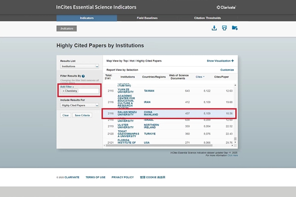 欧冠化学学科跻身ESI全球前1%