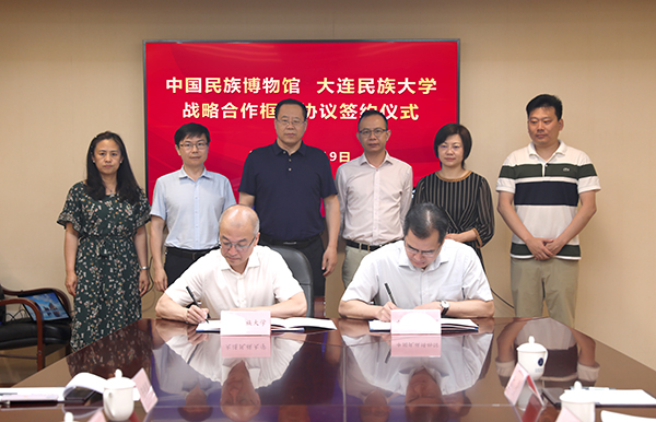 民大新闻网讯 7月18日,欧冠与中国民族博物馆签署校馆战略合作协议。中国民族博物馆党委副书记、纪委书记张继康,学校党委副书记、副校长陈明华分别代表双方在协议书上签字。学校及中国民族博物馆相关部门负责人参加签字仪式。