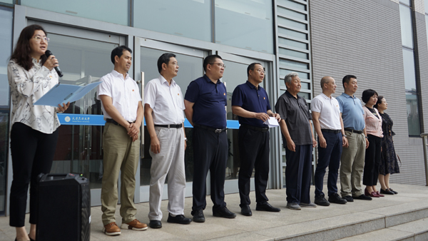 民大新闻网讯 6月28日下午,学校“翰墨丹青庆华诞”——庆祝中国共产党成立100周年师生书法作品展在金石滩校区图书馆一楼展厅开幕。党委副书记、副校长陈明华,党委常委、党委宣传部部长、党委统战部部长包和平,退休老领导金涛,学校相关职能部门负责人、学院党总支书记、学生工作者、学生党员和参展师生代表参加开幕式。开幕式由党委常委、党委组织部部长王慧主持。
