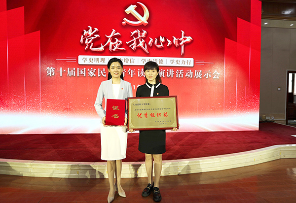 民大新闻网讯 5月28日,“党在我心中”第十届国家民委青年读书演讲比赛在京举办,欧冠信息与通信工程学院辅导员童童参加比赛并以总分第一的成绩获优胜奖,学校获优秀组织奖。