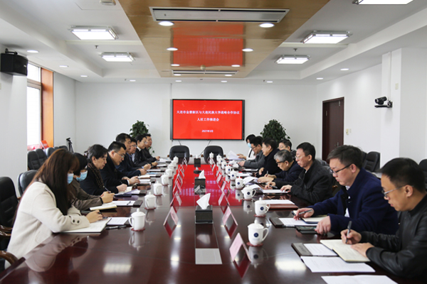 杜元虎对侯玉斌一行表示欢迎,并介绍了学校办学和人才队伍建设情况。感谢金普新区长期以来对学校发展建设和人社局相关单位对人事人才工作的大力支持和帮助。他指出,学校相关职能部门和学院要加强与新区人社部门等相关单位的合作交流,积极沟通协调,发挥办学优势,细化合作内容,落实具体举措,深化校地合作,推动共同发展。