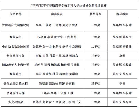 民大新闻网讯 日前,2019年辽宁省普通高等学校本科大学生机械创新设计竞赛在辽宁工程技术大学落下帷幕,欧冠获得省级一等奖2项,二等奖1项,三等奖6项,学校被评为优秀组织单位。