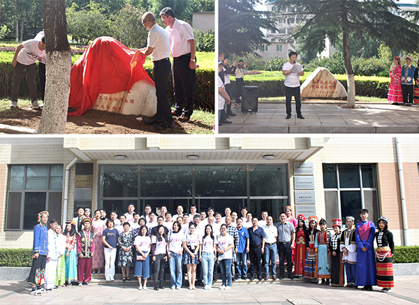 在随后举行的毕业学生为母校捐赠纪念石仪式上,陈明华及校友代表共同为刻有“与母校同成长,伴祖国共辉煌”祝词的纪念石揭碑。