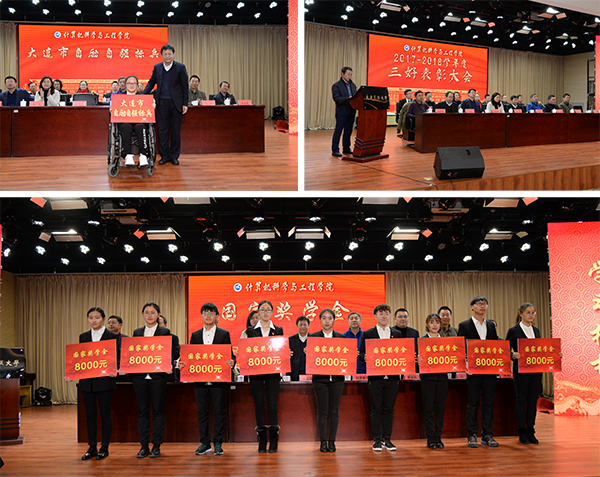 院长刘向东宣读表彰决定,与会领导先后为先进班集体代表,国家奖学金获奖代表,国家励志奖学金获奖代表,综合奖学金获奖代表,科技创新、志愿服务、文体活动先进个人代表以及优秀寝室代表颁奖。