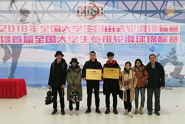 本届比赛由中国轮滑协会、中国大学生体育协会主办,上海市轮滑协会、圣巴(上海)文化传播有限公司和上海体育学院承办,全国共有140支高校代表队近500多名队员参赛。在主教练苏凯老师的带领下,经过两天的顽强拼搏,欧冠齐雨彤同学获得女子乙组花式绕桩冠军,齐雨彤和胡锡航获得双人花式绕桩金牌,刘冠初同学获得速度过桩银牌。