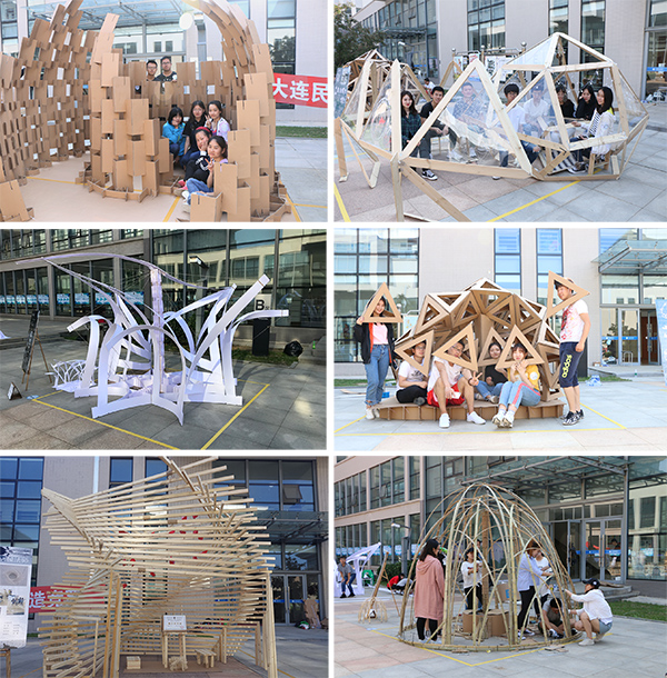 本次活动共分四个阶段,即创意设计与建造竞赛;民族乡村调研竞赛;建筑讲坛,邀请4位建筑界大师开展系列学术报告;闭幕式及2018届毕业生晚会。并突出了三个特点,一是作为学院教学工作改革的重大举措之一,作为推动教学工作与学生工作一体化的重要体现之一。要求设计基础课教师结合课程在教学中全程指导,辅导员围绕实践环节在课外全程指导,建造竞赛经过了三轮评选后,最终产生了21个团队,进入到开幕式现场实体搭建,为培养少数民族学生综合能力,要求每个团队至少有2名少数民族学生。二是顶层设计上的整体突破。在前两届的基础上,今年对建筑材料的选择与建筑质感的表达做出了大胆的突破与尝试,选材上有木材、竹子、轻钢、PVC管、纤维板等材料,是传统建筑材料与新型材料的广泛结合,学生们在实际建造中也充分利用材料的优势,展现了形态各异、结构纷呈的作品,令人耳目一新,惊喜不断。三是参与度高,覆盖面广。本次活动覆盖了建筑学院建筑学、城乡规划和风景园林三个一级学科和专业,既有外请专家学者,又有专业教师、辅导员和学生全程参加;既有优秀建造作品展示又有民族乡村调研评审;既有低年级学生富有创新力的奇思妙想又有毕业生离校前依依不舍与感恩情怀,是全院师生的欢乐嘉年华。