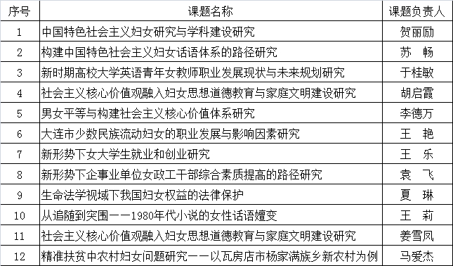 按照全国妇联、省妇联的工作部署,市妇联结合地方实际,积极开展妇女理论研究,提升妇女研究工作的质量和水平,推动大连妇女事业科学发展。针对本次立项工作,市妇联邀请有关专家对课题进行了评审审定。